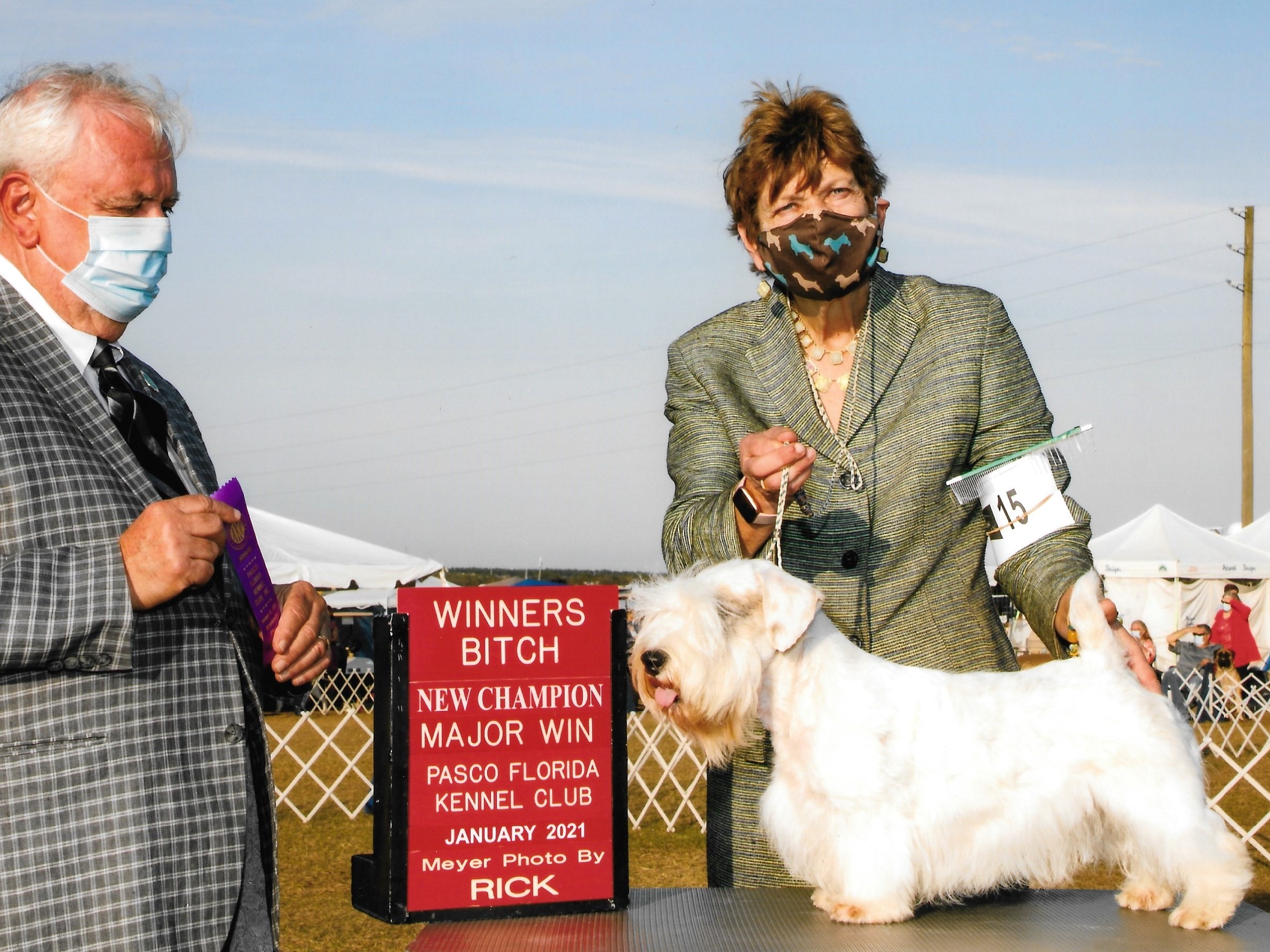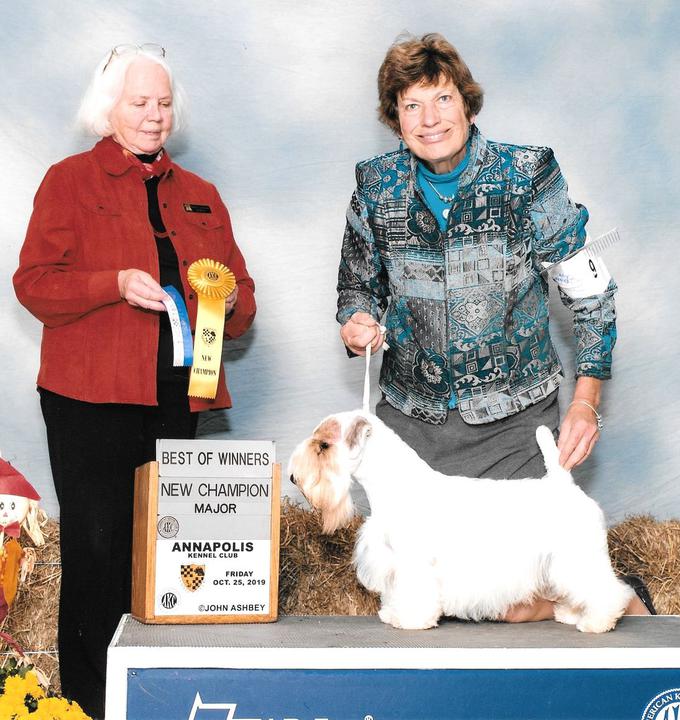 After a disrupted show season in 2020 Gina finished her championship from the Bred-By-Exhibitor class with co-breeder and co-owner Margery Good in Brooksville, FL in January 2021. Gina is Sophia's 6th champion and she was created using frozen semen from the top winning dog Badger (the original Badger). She is compact with a wonderful coat and fantastic disposition. Look for Gina in selected shows in 2021.
